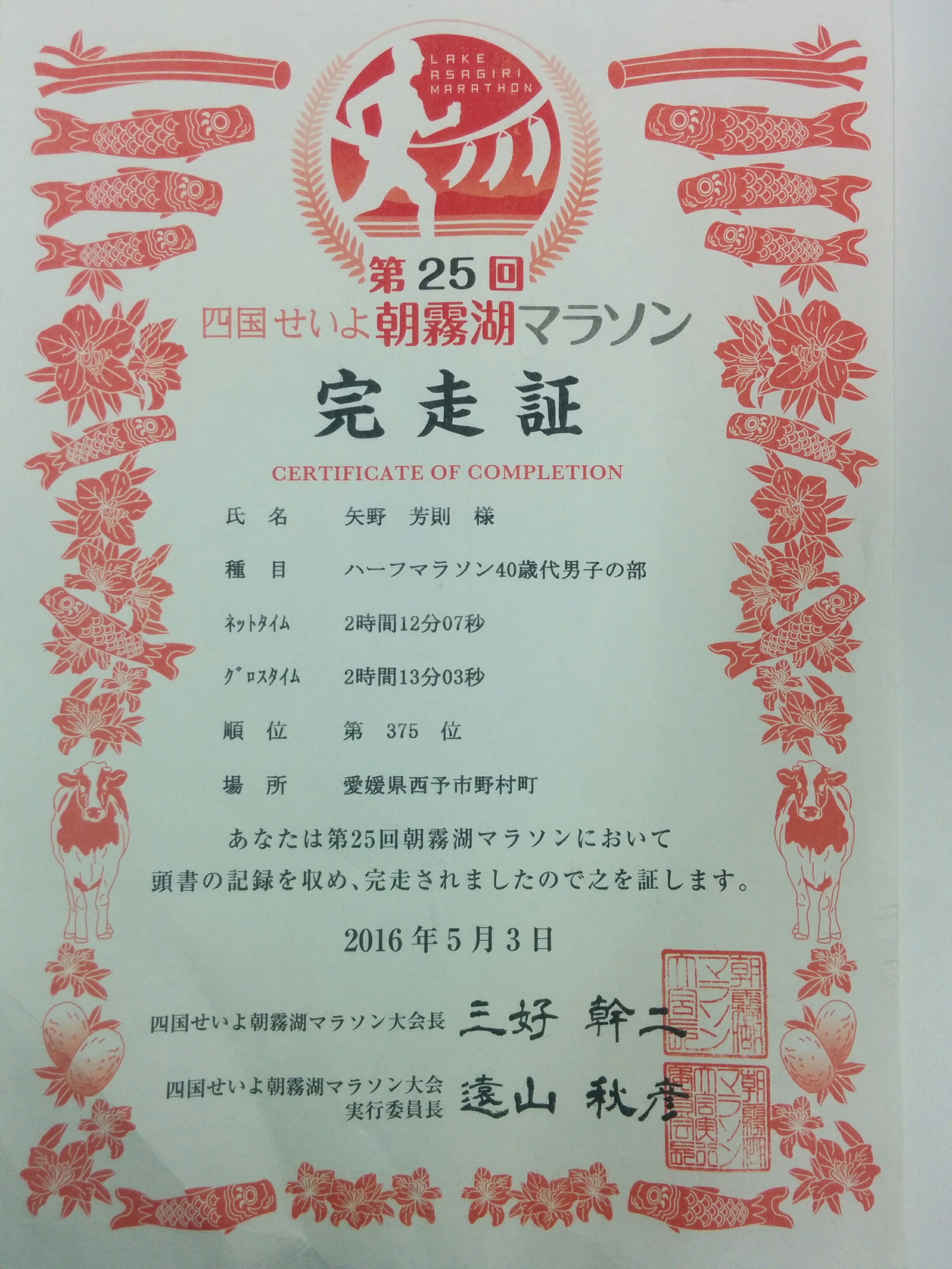 自己ベスト(初マラソンなので)で見事に完走しました。(^^)