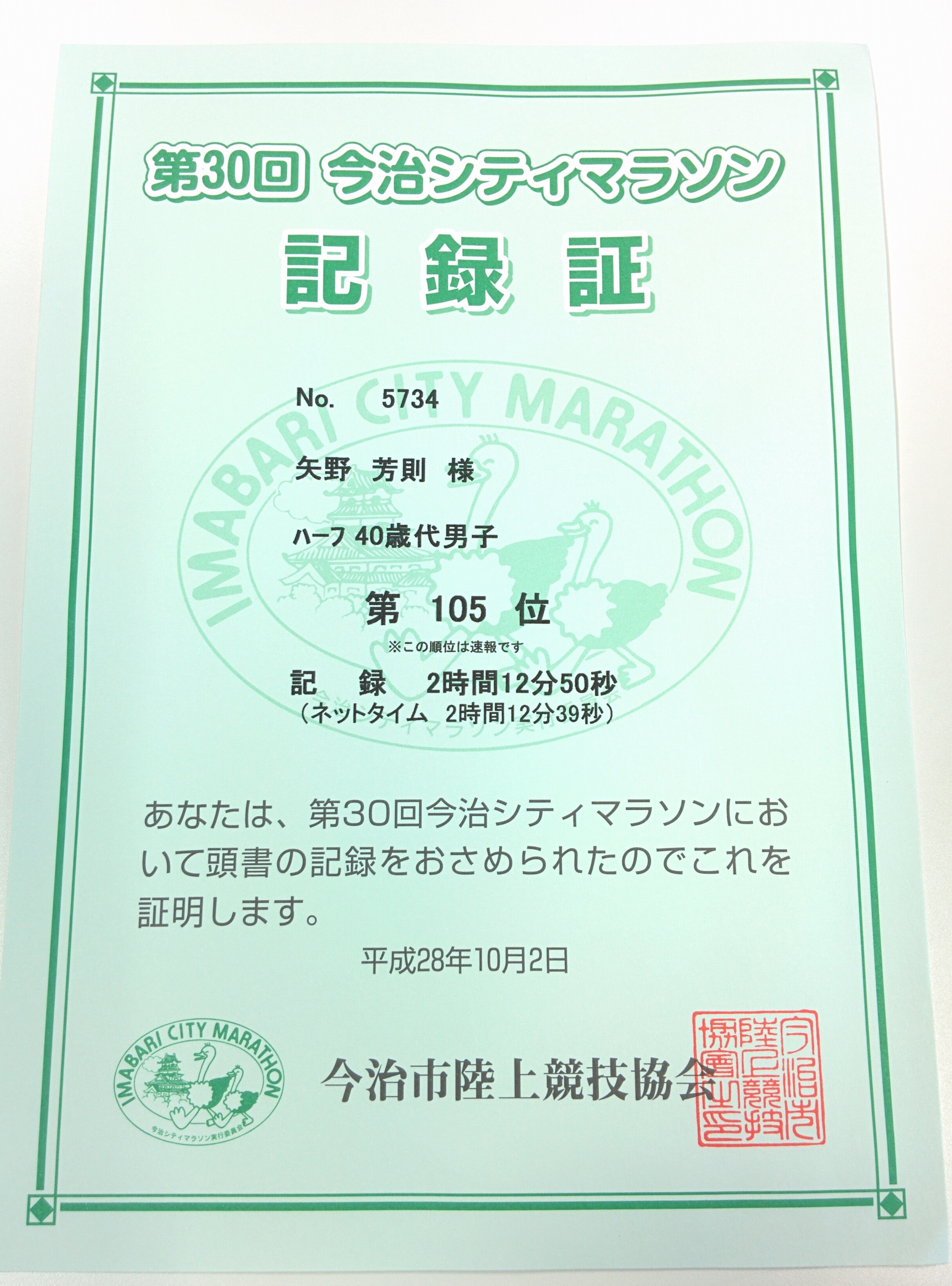 先日、10月2日に開催された今治シティマラソンに当社陸上部より
