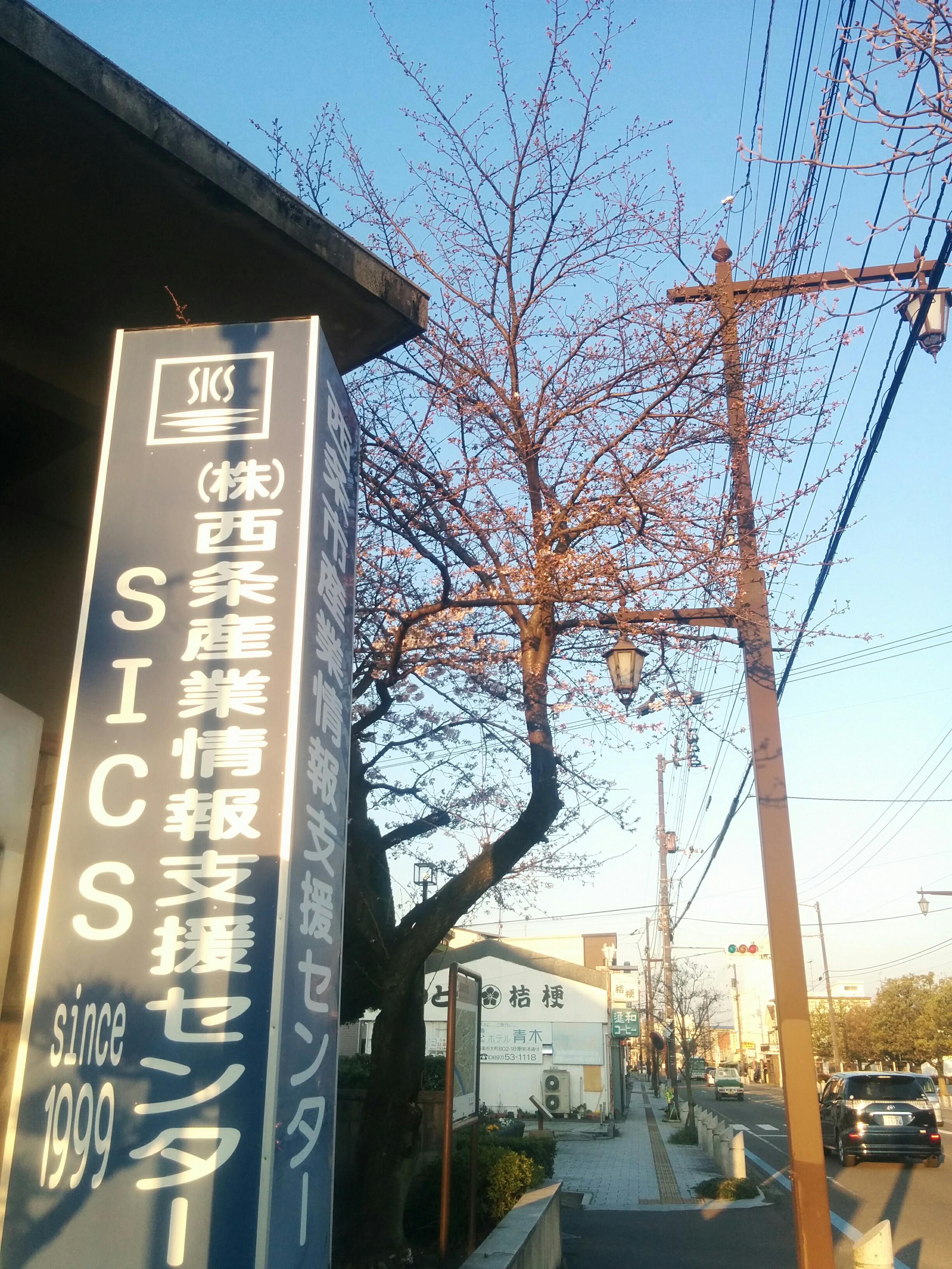 サイクスの正門にある桜の木もまだつぼみが多いです。