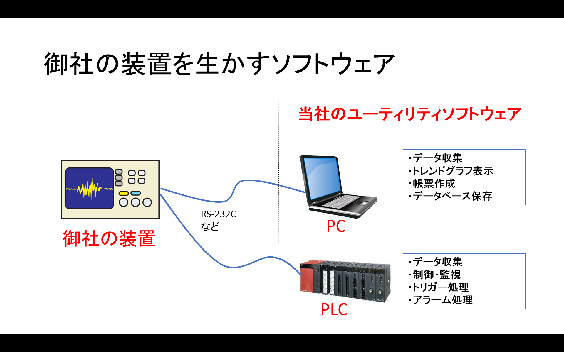 例えば計測器であれば、計測データをPCへ取り込んでトレンドグラフを表示したり、