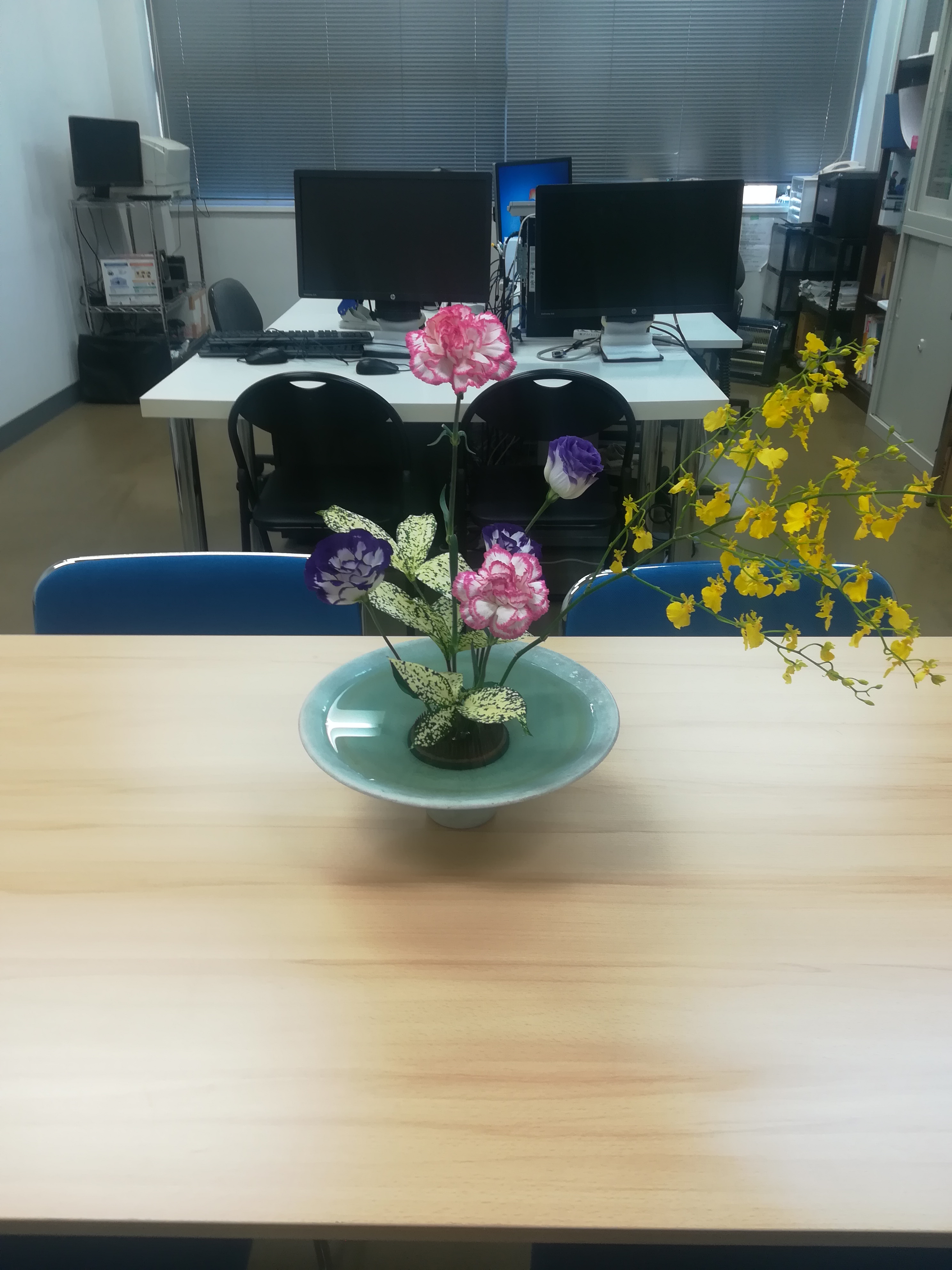 そんなわけで、殺風景な事務所にお花を生けてもらいました。